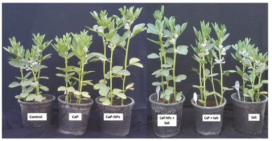 Therefore, the present study aimed to evaluate the potential use of CaP-NPs to mitigate the salinity stress in Vicia faba at the level of agro-physiological traits.