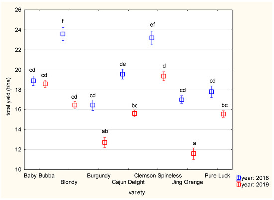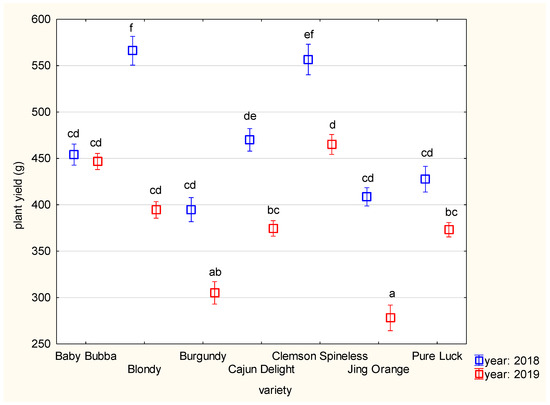 | Clemson Spineless | 2434.12 ± 15.21 a | 3020.71 ± 24.98 cd | 16,612.60 ± 113.73 a | 17,730.79 ± 95.51 b |