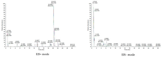Chromatographic separation was performed on a Hypersil GOLD aQ column (2.1 × 100 mm, 1.9 μm, Thermo Fisher Scientific), with mobile phase A consisting of 0.1% formic acid in water and mobile phase B consisting of 0.1 formic acid in acetonitrile. The column temperature was maintained at 40 °C. The gradient conditions were as follows: 5% B over 0.0–2.0 min, 5–95% B over 2.0–22.0 min, held constant at 95% B over 22.0–27.0 min, and washed with 95% B over 27.1–30 min. The flow rate was 0.3 mL/min and the injection volume was 5 μL.