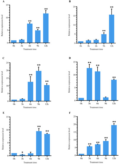 2.7. Overexpression Vector Construction and A. thanliana Transformation