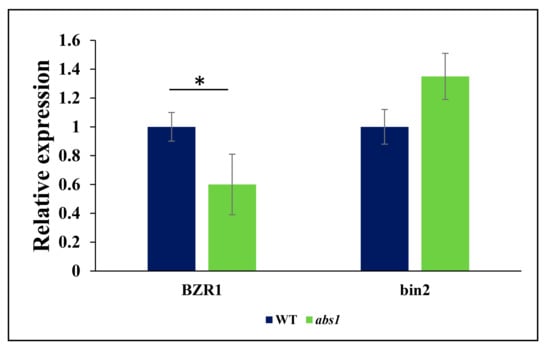 3.2. The Altered Transcript Level of BR Signaling Components in abs1 Mutant