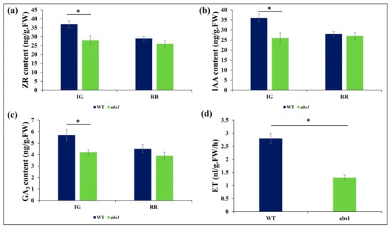 3.3. BR-Signaling Disruption Causes a Decrease in Phytohormone Production