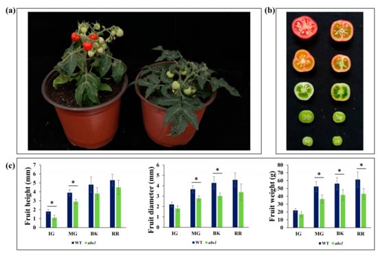 3.6. The Altered Transcript Level of Fruit Size-Determining Genes in abs1 Mutant Fruit