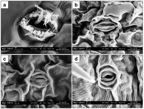 3.5. Observation of Stomatal Structures via SEM
