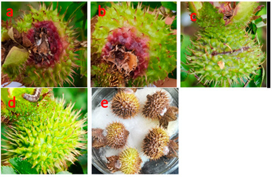 - Han, L.; Liu, X.D.; Huang, W.Y.; Wu, X.M. Occurrence and Control Technology of Powdery Mildew in Rose roxburgh Tratt. China Fruits 2021, 1, 6–10. [Google Scholar] [CrossRef]