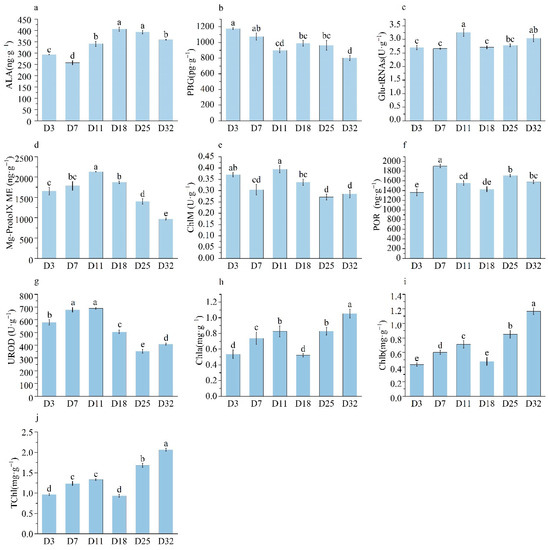 Figure 7. Chlorophyll precursor and chlorophyll content of different sampling time.