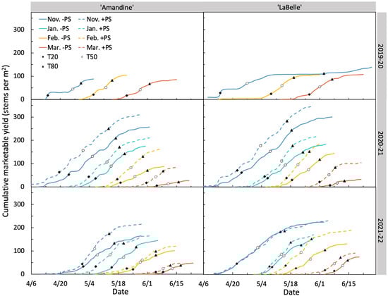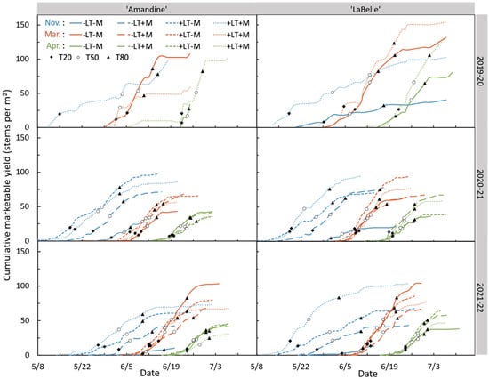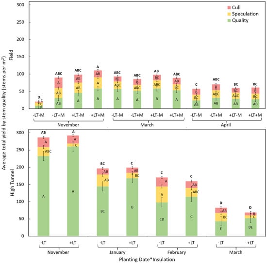 | Total Yield (Stems per m2) | Marketable Yield (Stems per m2) | ||||||||