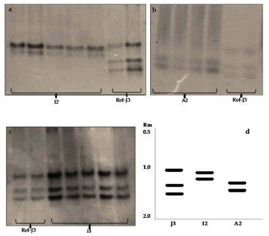 - Carneiro, R.M.D.G.; Almeida, M.R.A.; Quénéhervé, P. Enzyme phenotypes of Meloidogyne spp. isolates. Nematology 2000, 2, 645–654. [Google Scholar] [CrossRef]
