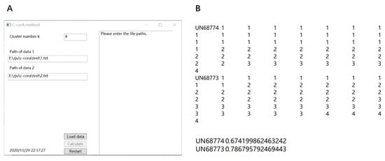 (A) The appearance of the C-CoA application written using C # WPF. (B) An example of an output file.