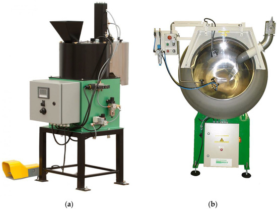 Vegetable seed encrusting and pelleting are special coating technologies which work by adding the liquid-containing binders, powdered fillers, plant protectants and nutritional ingredients to be processed into fully wrapped seeds. Encrusted vegetable seeds may also be defined as small pellets, but the original shape of the encrusted seed is retained [78]. In the seed coating process, the active components and other coating materials are applied to vegetable seeds by the applicable facilities in desired shape. Seed coaters can be divided into rotary seed coaters and drum seed coaters according to the working principle (Figure 5). The overall goal of vegetable seed pelleting equipment is to obtain compact and homogeneous products without inducing any damage to the vegetable seeds during treatment [79].