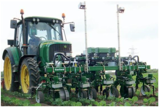 In order to verify the stability of mechanical and intelligent weeding, Melander et al. [141] compared the mechanical and the intelligent weeding in onion and cabbage fields. A camera was installed on the weeding machine in order to identify weeds and vegetables by means of image processing. The results showed that an intelligent weeder can take advantage when weeds are close to the crop, without subsequent manual pruning, but it may cause certain damage to seedlings and has a low weeding efficiency. Lati et al. [142] used Robovator to conduct experiments in lettuce fields, and the results showed that Robovator weeding could save a lot of time compared with manual weeding if the species and quantity of the weeds were large.
