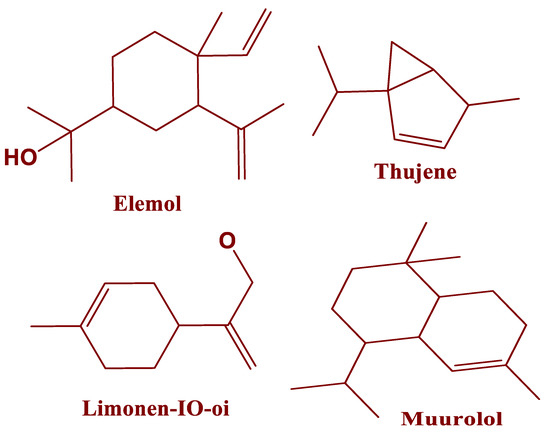 Molecular structures of phytochemical compounds in EOs of J. thurifera.
