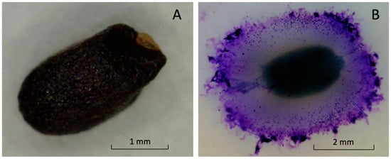 Mucilage, produced by either the seed coat or pericarp, plays ecophysiological roles including facilitation of seed hydration, regulation of germination by affecting oxygen entry into seeds, improved germination in saline environments, and mediation of seed dispersal through adhesion to soil or animal vectors [6,9,10,14,15,16]. For example, the achenes of Artemisia sphaerocephala (Asteraceae) produced mucilage and germinated to a higher percentage compared with demucilaged achenes [17].