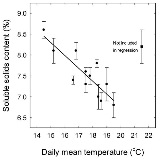 APA StyleMenzel, C. M. (2022). Effect of Temperature on Soluble Solids Content in Strawberry in Queensland, Australia. Horticulturae, 8(5), 367. https://doi.org/10.3390/horticulturae8050367