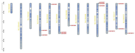 Genome density and distribution of SlMYBR genes on tomato chromosomes.