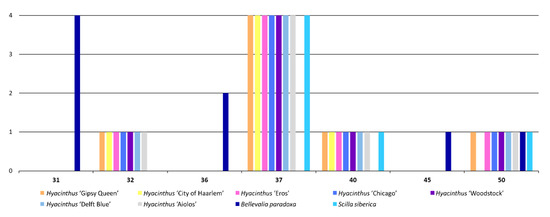 - Pasztor, R.; Bala, M.; Sala, F. Flowers quality in relation to planting period in some hyacinth cultivars. AgroLife Sci. J. 2020, 9, 263–272. Available online: http://agrolifejournal.usamv.ro/pdf/vol.IX_1/Art33.pdf (accessed on 31 January 2022).