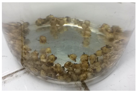 Explants of shoot tips and first-node segments of Viburnum dentatum L., excised from in vitro derived viburnum microshoots, were encapsulated in 2.5% sodium alginate mixed with liquid MS nutrient medium and hardened in 50 mM of calcium chloride producing solid, soft and uniform beads. Increasing the calcium chloride concentration to 100 mM, the beads obtained were firm and of a uniform globular shape, suitable for handling, and exhibited a germination response of 48.9% [25].