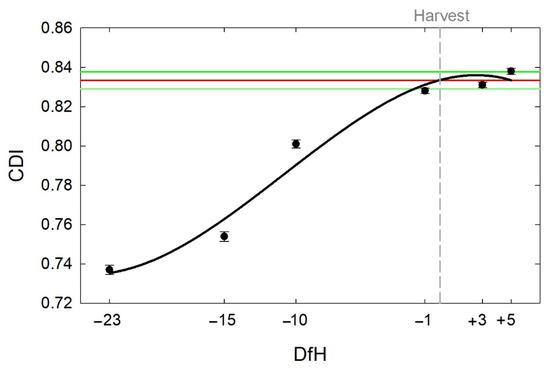 2.6. CDI Relationship with Maturity and Time from Harvest