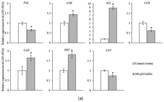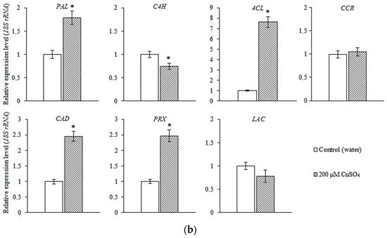 - Chen, E.L.; Chen, Y.A.; Chen, L.M.; Liu, Z.H. Effect of copper on peroxidase activity and lignin content in Raphanus sativus. Plant Physiol. Biochem. 2002, 40, 439–444. [Google Scholar] [CrossRef]