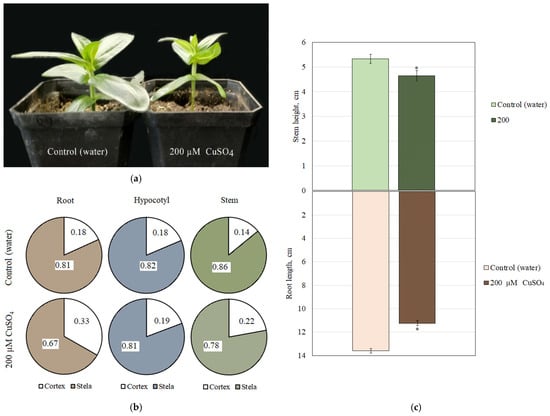Chicago/Turabian StyleTugbaeva, Anastasia, Alexander Ermoshin, Hada Wuriyanghan, Maria Maleva, Galina Borisova, and Irina Kiseleva. 2022. "Copper Stress Enhances the Lignification of Axial Organs in Zinnia elegans" Horticulturae 8, no. 6: 558. https://doi.org/10.3390/horticulturae8060558