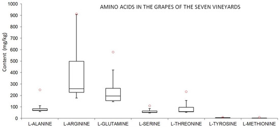 - Mirás-Avalos, J.M.; Bouzas-Cid, Y.; Trigo-Córdoba, E.; Orriols, I.; Falqué, E. Amino Acid Profiles to Differentiate White Wines from Three Autochtonous Galician Varieties. Foods 2020, 9, 114. [Google Scholar] [CrossRef] [PubMed]