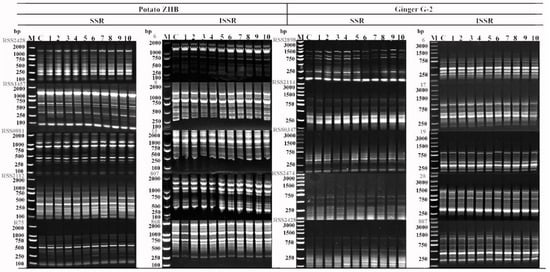 SSR and ISSR banding patterns in recovered potato ZHB and ginger G-2. Three repeats of 10 randomly selected samples were detected.