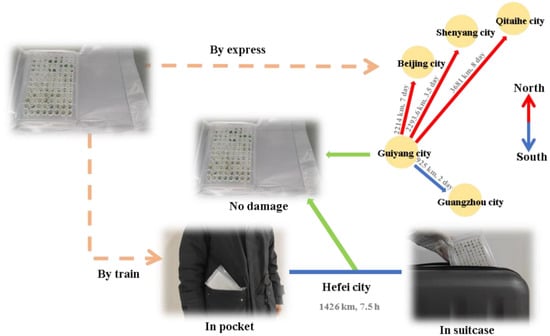 The transportation resistance of the present device was tested via express automobile transportation and railway transportation in pocket and suitcase, across thousands of kilometers. The packages remained complete and the micro-cuttings were tightly attached to the medium in each cup (Figure 8).
