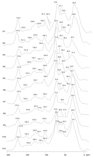 13C-CPMAS-NMR of compost samples (P1–P11).