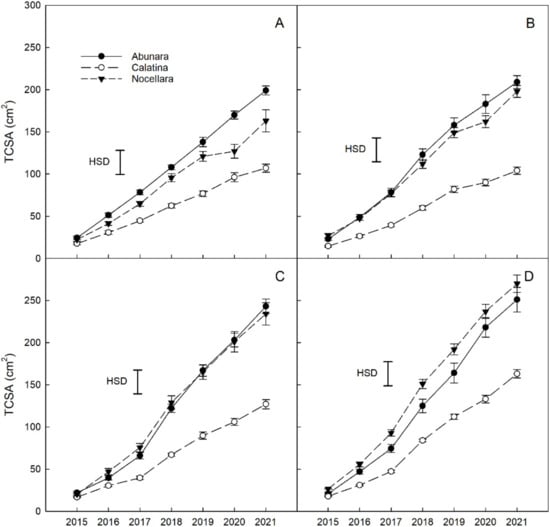 - Nardini, A.; Gasco, A.; Raimondo, F.; Gortan, E.; Lo Gullo, M.A.; Caruso, T.; Salleo, S. Is Rootstock-Induced Dwarfing in Olive an Effect of Reduced Plant Hydraulic Efficiency? Tree Physiol. 2006, 26, 1137–1144. [Google Scholar] [CrossRef]