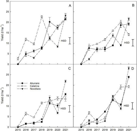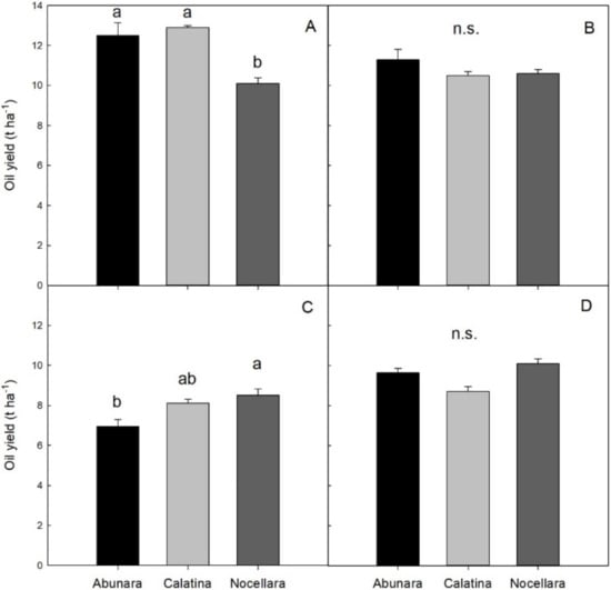 - Grilo, F.; Novara, M.E.; D’Oca, M.C.; Rubino, S.; Lo Bianco, R.; Di Stefano, V. Quality evaluation of extra-virgin olive oils from Sicilian genotypes grown in a high-density system. J. Food Sci. Nutr. 2020, 71, 397–409. [Google Scholar] [CrossRef]