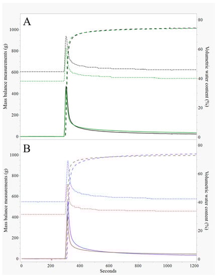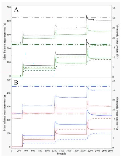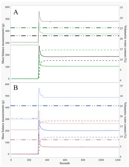 2.4.3. Experiment 3, Dry Initial Moisture Conditions; (10% VWC)