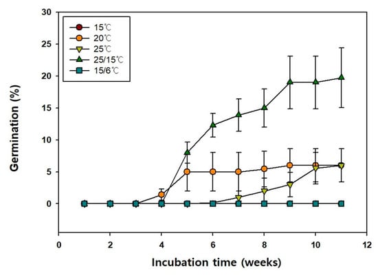 Chicago/Turabian StyleLee, Da Hyun, Chung Youl Park, Young Ho Jung, Jun Hyeok Kim, Sung Hyuk Park, Ho Jun Son, Chae Sun Na, and Wan Geun Park. 2022. "Seed Dormancy and Germination Characteristics of Vaccinium oldhamii Miq. (Ericaceae)" Horticulturae 8, no. 9: 836. https://doi.org/10.3390/horticulturae8090836