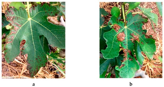 Based on the results obtained, it can be suggested that leaf calcium concentrations above 16 g kg−1 were toxic for fig tree cv. Roxo de Valinhos due to symptoms of leaf necrosis. This record must be considered since excessive necrosis leads to a decrease in photosynthesis areas and negatively affects the development and production of trees.