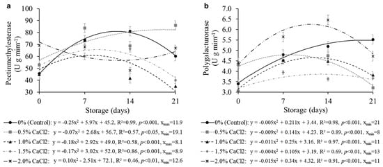 The efficiency of calcium in reducing polygalacturonase and pectin methylesterase activity has already been reported by Liu et al. [