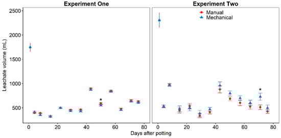 Figure 1). Total leachate volume during the entire experiment was not significantly different (