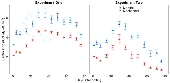 The EC of substrate leachate (