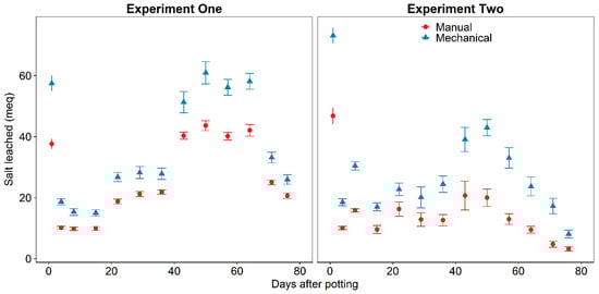 22] and used with volume of leachate to calculate total salts leached.