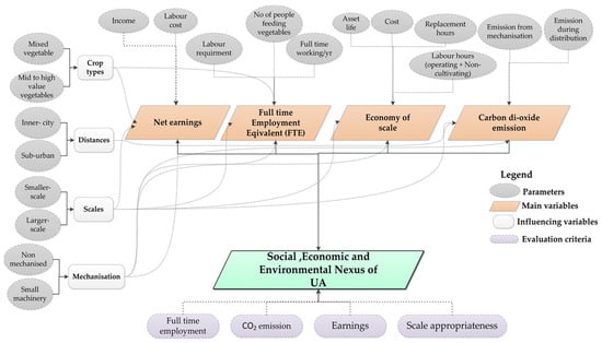 The conceptual framework for evaluating UA’s economic, social and environmental feasibility in this study.