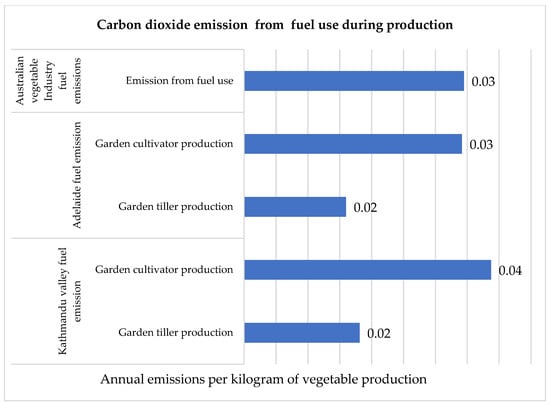 The fuel consumption (in L/hour) during tillage and bed preparation for a garden tiller and a cultivator was taken from machine specifications for typical small-scale cultivation equipment from Grafton power products (Available online: https://www.graftonpowerproducts.com.au/listing/honda-gx25-mini-4-stroke-engine/ accessed on 15 July 2022).