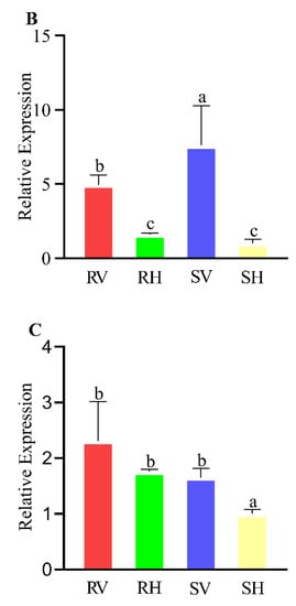 - Livak, K.J.; Schmittgen, T.D. Analysis of relative gene expression data using real-time quantitative PCR and the 2−ΔΔCT method. Methods 2001, 25, 402–408. [Google Scholar] [CrossRef]