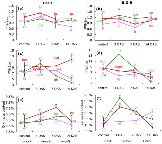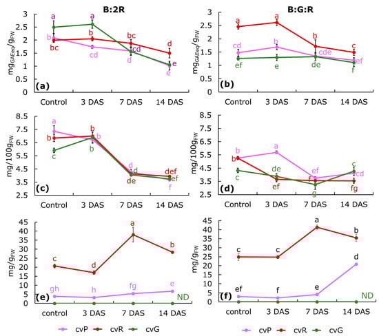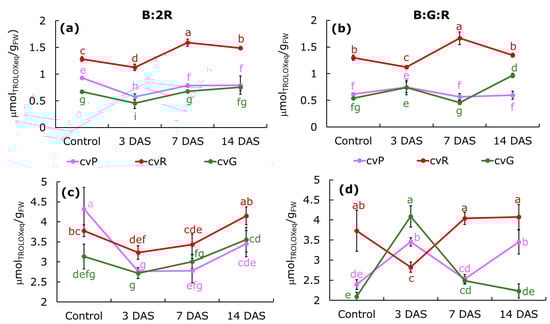 | Car (mg/gFW) | B:2R | cvP | 0.060 ± 0.011 d | 0.078 ± 0.006 abc | 0.088 ± 0.016 ab | 0.071 ± 0.001 cd |