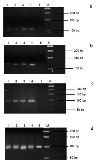The related transcript quantification was performed using relative intensity to reference gene (UBIsw). Gene expression levels were analyzed by relative intensity to the reference gene using ImageJ software version 1.50i (Wayne Rasband National Institutes of Health, Bethesda, MD, USA). The relative intensity of gene expression was subjected to statistical analysis using Statistica 9 software (analytical software SX, version 9, Tallahassee, FL, USA).