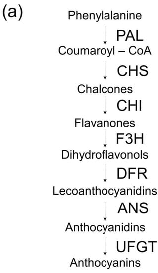 - Liu, H.; Liu, Z.; Wu, Y.; Zheng, L.; Zhang, G. Regulatory mechanisms of anthocyanin biosynthesis in apple and pear. Int. J. Mol. Sci. 2021, 22, 8441. [Google Scholar] [CrossRef]