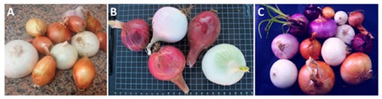 Onion (Allium cepa L.) is a diploid (2n = 2x = 16) bulb crop that belongs to the Alliaceae family. It is grown worldwide; hence, onion ranks second as the principal vegetable crop after tomatoes, with an annual production of 100 million tons of dry bulbs [1]. The onion bulb is highly nutritious and rich in flavonoids, such as quercetin, anthocyanins, fructo-oligosaccharides, and organosulphur compounds [2]. Additionally, onions are specifically rich in two chemical groups that have benefits for human health: flavonoids and alkenyl-cysteine sulfoxides (ACSO) [3], which provide nutritional benefits and health-promoting properties for human health such as anti-allergic effects [4], anti-cancerous activity [2], cardiovascular support [5], and antiplatelet actions [6].