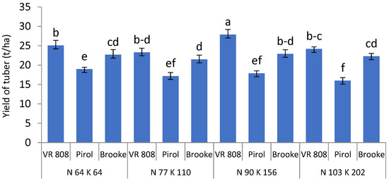 - Gómez, I.M.; Magnitskiy, S.; Rodríguez, E.L. Potential yield and efficiency of N and K uptake in tubers of cvs. Capiro and Suprema (Solanum tuberosum group Andigenum). Agron. Colomb. 2018, 36, 126–134. [Google Scholar] [CrossRef]