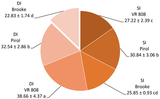 | SI (standard) | VR-808 | 1.76 ± 0.24 b | 1.14 ± 0.50 b | 11.24 ± 0.85 c | 13.07 ± 2.06 cd | 156.39 ± 0.20 a |
