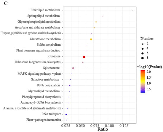 3.4. KEGG Pathway Enrichment of DEPs in Allium mongolicum Seeds under Accelerated Ageing