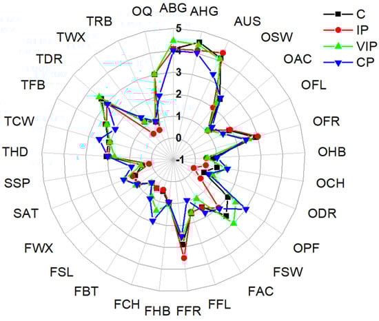 | Control (C) | 82.91 ± 1.01 a | 15.20 ± 0.26 a | 3.34 ± 0.00 a | 1.63 ± 1.01 a | 29.49 ± 1.39 a | 48.49 ± 10.82 a | 22.20 ± 2.17 a |