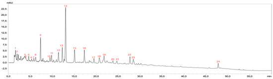 2.5.1. High-Performance Liquid Chromatography with Photodiode Array Detection-Tandem Mass Spectrometer (HPLC–PDA–MS/MS)