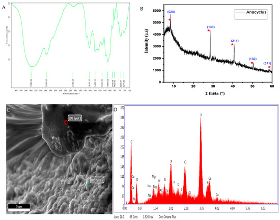 - Kerboua, K.A.; Benosmane, L.; Namoune, S.; Ouled-Diaf, K.; Ghaliaoui, N.; Bendjeddou, D. Anti-inflammatory and anti-oxidant activity of the hot water-soluble polysaccharides fromzAnacyclus pyrethrum (L.). Lag. roots. J. Ethnopharmacol. 2021, 281, 114491. [Google Scholar] [CrossRef] [PubMed]